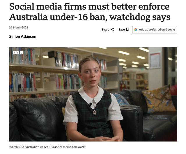 “The world's biggest social media companies are not doing enough to keep children in Australia off their platforms, the country's internet regulator says, despite a law that came into effect late last year.”