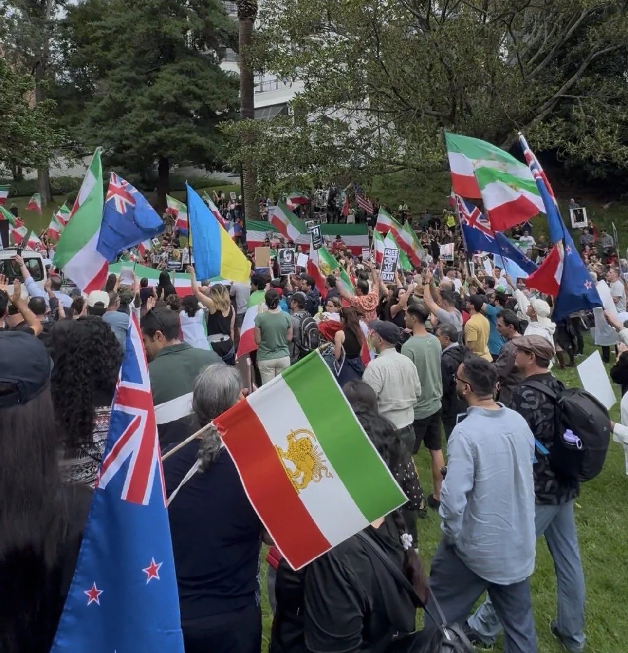 In the sea of flags held by the 4,000 demonstrators in Auckland CBD on Saturday, one stood out to me again and again: the New Zealand flag held by Iranian demonstrators.